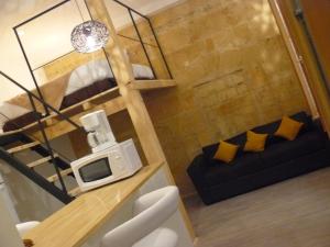 Il monolocale dispone di un letto singolo o matrimoniale, riscaldamento e armadio per riporre gli effetti personali. Il bagno privato è completo di doccia o vasca/doccia combinata, servizi igienici e asciugamani inclusi. Gli ospiti possono preparare i pasti nell’angolo cottura dotato di forno, piano cottura, frigorifero, microonde, macchina da caffè e tutte le stoviglie necessarie, è presente anche un tavolo da pranzo. A disposizione una zona salotto per momenti di relax.