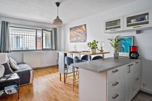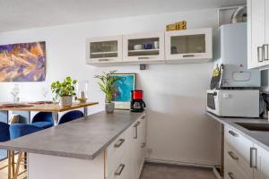 W pełni wyposażony aneks kuchenny posiada nowoczesne sprzęty takie jak lodówka, mikrofalówka, toster, ekspres do kawy i czajnik elektryczny wraz ze sprzętem kuchennym oraz stół jadalniany idealny na posiłki wewnątrz apartamentu lub na tarasie z widokiem na miasto. Dodatkowo goście mają do dyspozycji pralkę oraz telewizor wspierany przez bezpłatne Wi-Fi dostępne we wszystkich pomieszczeniach mieszkania.