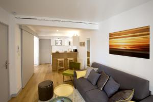 This one-bedroom accommodation includes a separate living room furnished with a sofa and seating area featuring a flat-screen TV. The fully equipped kitchen comes with a refrigerator, dishwasher, microwave, toaster, coffee machine as well as tea and coffee making facilities in addition to full kitchenware. The unit also contains two beds along with hardwood parquet flooring throughout, bathroom amenities include a private bathroom with shower or bathtub options plus hairdryer and body soap.