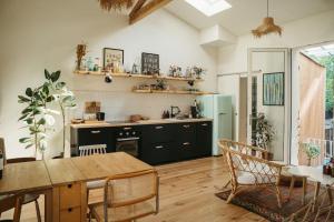 Внутри гостей ждут две спальни и полностью оборудованная кухня с духовкой, посудомоечной машиной, холодильником, кофемашиной, тостером, электрическим чайником и полным набором кухонной утвари. В распоряжении проживающих полотенца и постельное бельё, также имеются необходимые удобства: отопление, деревянные полы, утюг, зона отдыха с диваном и рабочим столом и стиральная машина.