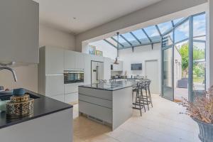 Die voll ausgestattete Küche verfügt über Kochutensilien sowie moderne Geräte wie Kühlschrank, Geschirrspüler, Backofen, Mikrowelle, Toaster und Wasserkocher. Weitere Annehmlichkeiten sind Tee- und Kaffeezubereitungsmöglichkeiten, ein Wäschetrockner sowie ein Grill im Außenbereich. WLAN steht im gesamten Bereich kostenfrei zur Verfügung, für Unterhaltung sorgt ein Fernsehgerät. Eine Waschmaschine ist ebenfalls vor Ort nutzbar.