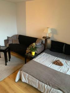 Este apartamento para no fumadores cuenta con un dormitorio con dos camas y un baño privado equipado con las comodidades esenciales para tu confort. La cocina americana totalmente equipada incluye nevera y facilidades para preparar té y café que satisfacen tus necesidades culinarias en el interior.