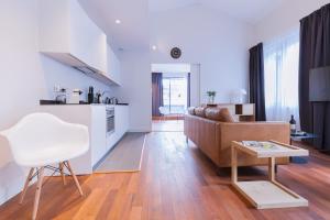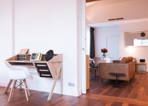 Das geräumige Zimmer umfasst ein Bett sowie eine gut ausgestattete Küche mit Kochfeld, Kühlschrank, Geschirrspüler, Backofen, Küchenutensilien und Esstisch. Der Wohnbereich ist mit Klimaanlage, Heizung, Bügeleisen mit Bügelbrett, Wäscheständer, Sitzgelegenheiten und Arbeitstisch ausgestattet. Im Badezimmer stehen den Gästen kostenlose Pflegeprodukte sowie ein Haartrockner zur Verfügung.