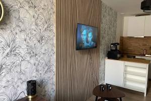 This modern studio features one bed with accompanying linens and towels for comfort. Guests can enjoy a private bathroom with either a bathtub or shower along with heating to ensure a cozy stay. The accommodation offers additional conveniences such as a washing machine, sofa bed, sofa seating area with television access.
