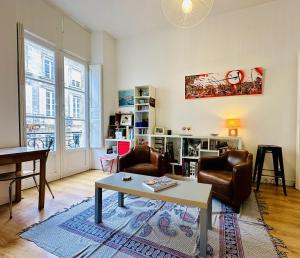 La struttura si trova a breve distanza a piedi dal Grand Théâtre de Bordeaux, a 700 metri, dal CAPC Musée d'Art Contemporain e dal Museum of Aquitaine, entrambi circa 600 metri. Altri luoghi di interesse nelle vicinanze includono Great Bell Bordeaux, la Basilica di Saint-Michel, Place de la Bourse, il Museo del Vino e del Commercio e la Cattedrale di Bordeaux. L'aeroporto di Bordeaux-Mérignac dista 10 km dall'appartamento.